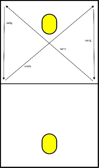 - I giocatori senza palla corrono dritti l'uno verso l'altro. Dopo un salto, si dirigono lateralmente verso il cono.