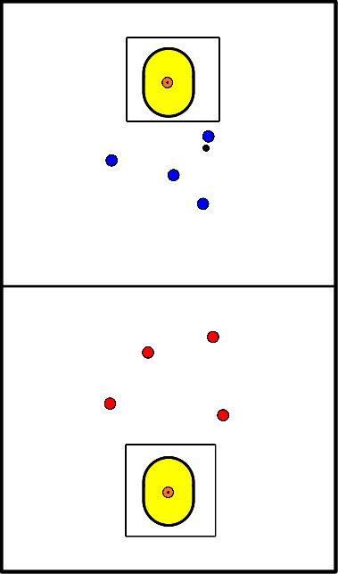 - Il terzo terzetto si esercita sui palloni liberi e sui tiri di rigore. Anche la palla di partenza può essere esercitata di nuovo. (Come sopra)