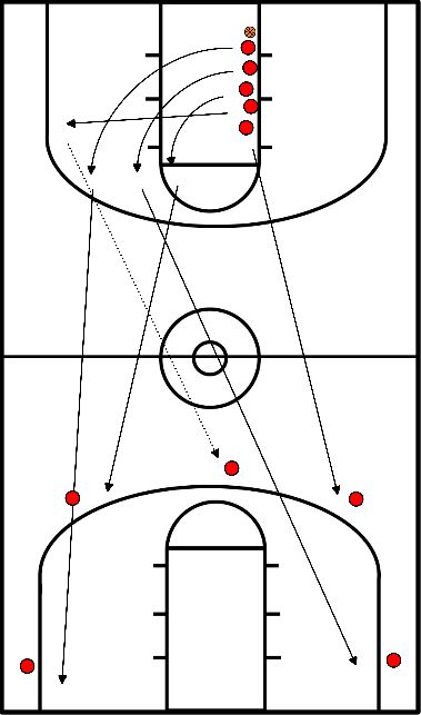 - Dopo il tiro o la rubata, la difesa passa la palla all'angolo