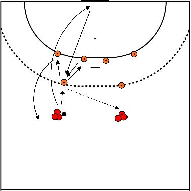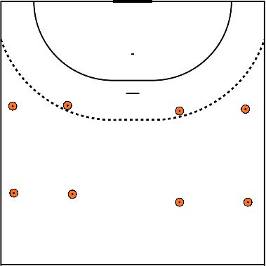 - Il giocatore che riceve la palla +/- 2 metri prima della linea tratteggiata tira in porta.