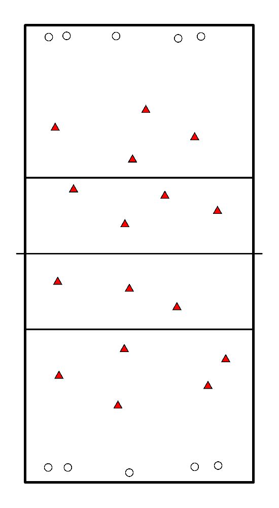 - 2 x 4 giocatori a bordo campo per tutta la lunghezza del campo.