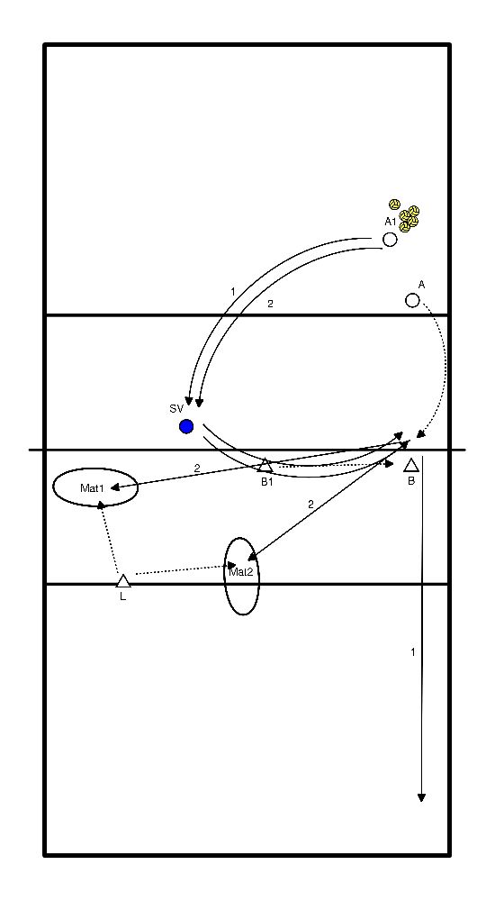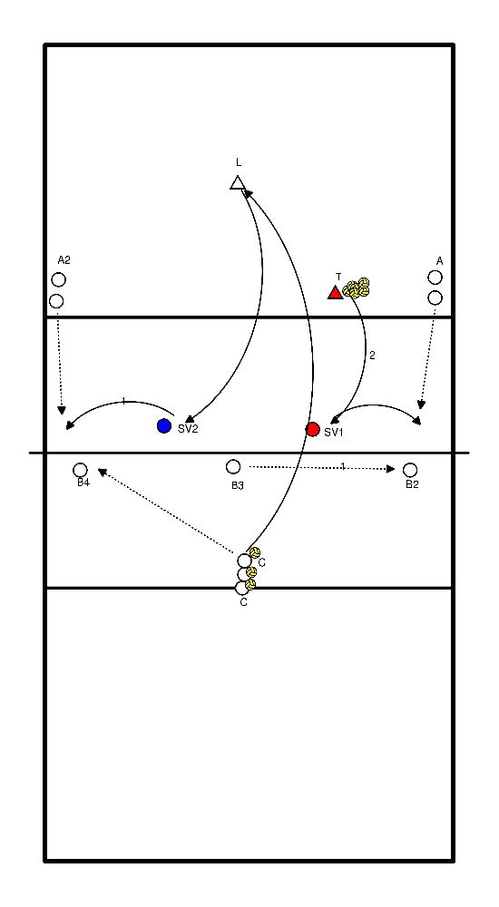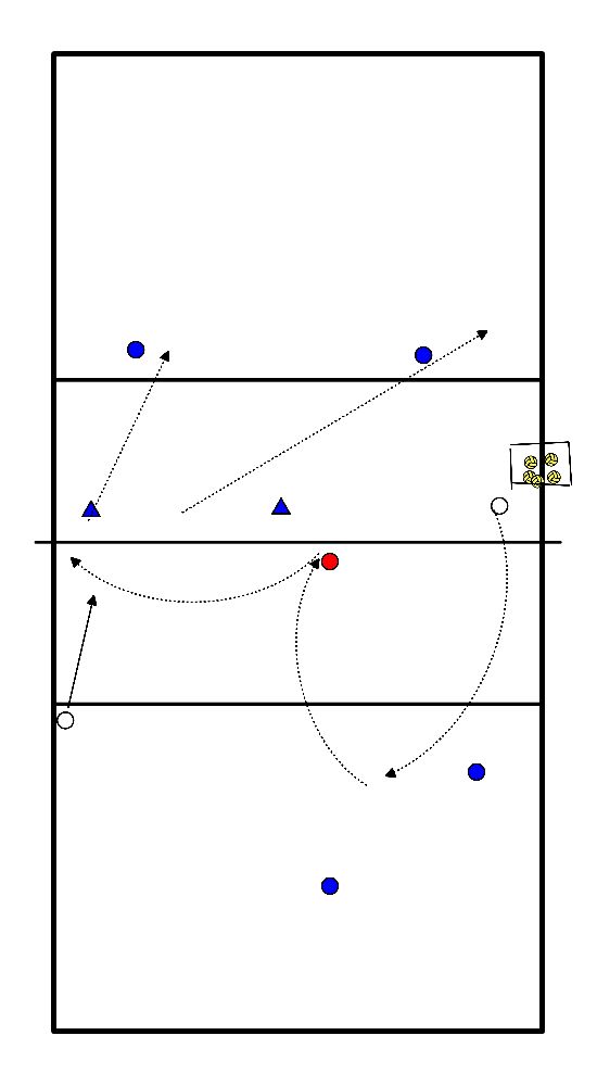 - 2 giocatori in pos 2 con 1 palla, 1 in pos 4, 1 in pos 5 e 1 in pos 1.
