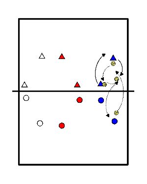 - L'obiettivo è giocare la palla a tre. Ciò richiede l'impegno di ogni giocatore.