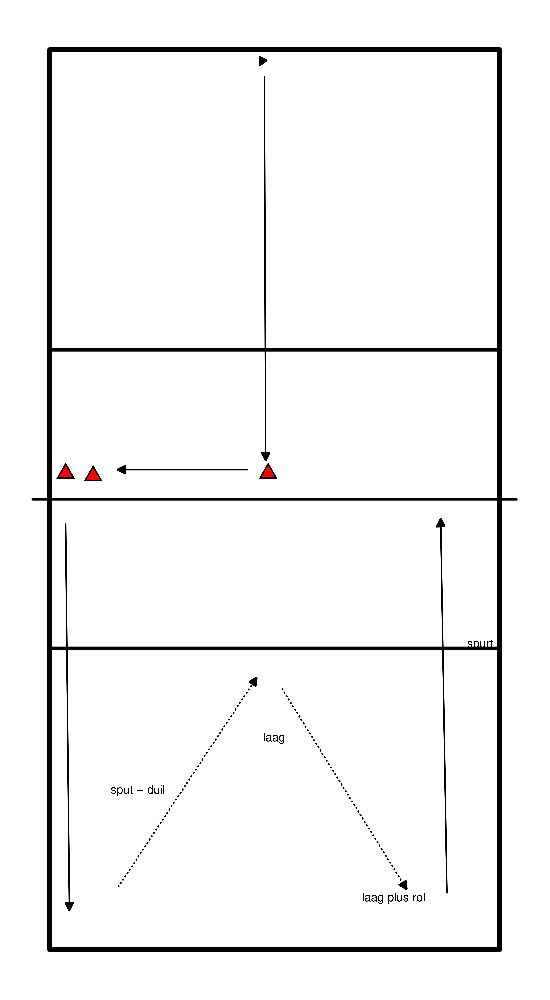 Variante:- Il gruppo 2 si sposta all'indietro dalla linea dei 3 metri per ricevere il servizio.