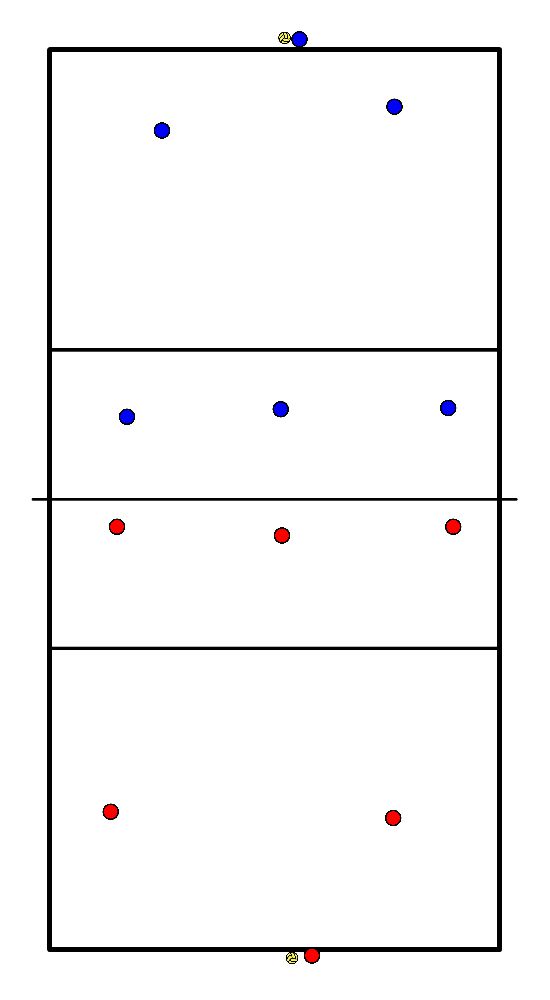 - 3 palleggiatori e 1 palleggiatore fisso gestiscono il servizio dell'allenatore, giocano il rally.