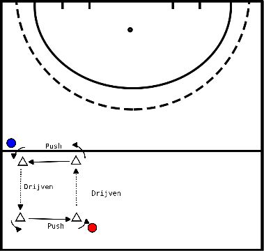 Hockeyoefening: aannames en push in een vierkant