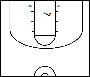 - De speler vangt de bal, schiet op de dichtstbijzijnde basket en haalt zijn eigen rebound op.