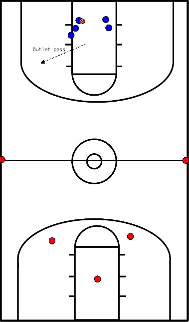 - Na score of verdedigingsrebound loopt het andere team een break terug