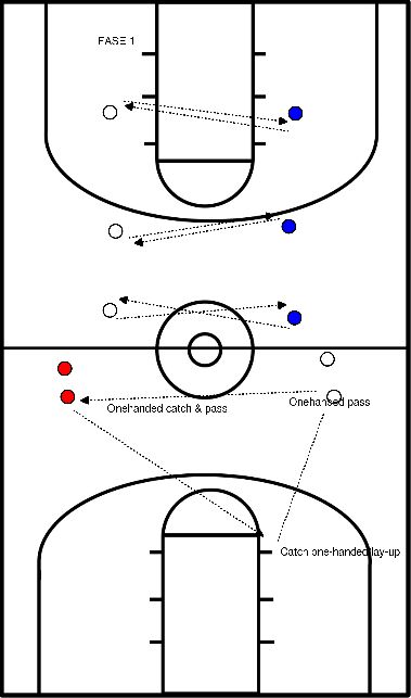 - Na de layup gaat de passer achter in de rij aan de baseline staan.