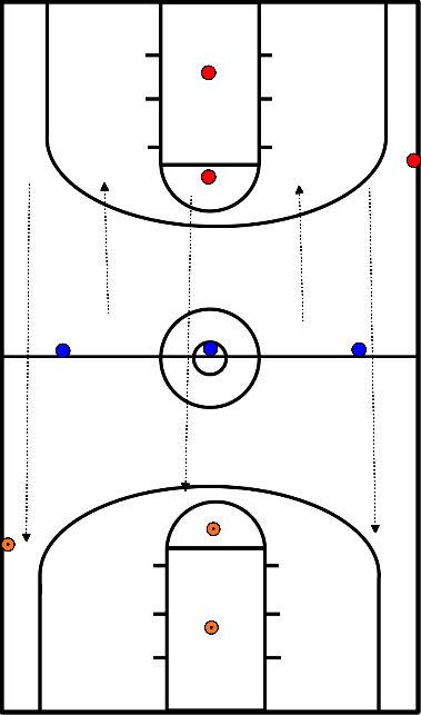 - Na de layup, gaat de passer achter in de rij aan de baseline staan.