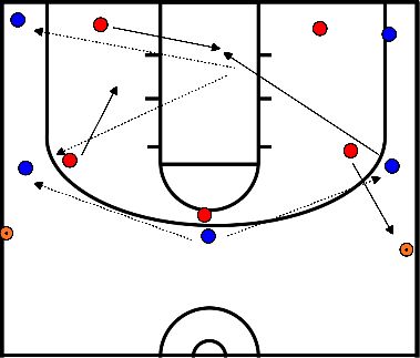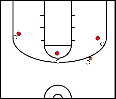 - Forceert de verdediger een turnover, gaat hij naar de top van de 3 puntlijn en hebben zijn teamgenoten 2 seconden om aan te sluiten met een strakke defense.