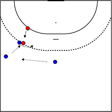 - Als het niet lukt om te scoren, speelt LH de bal naar LO.