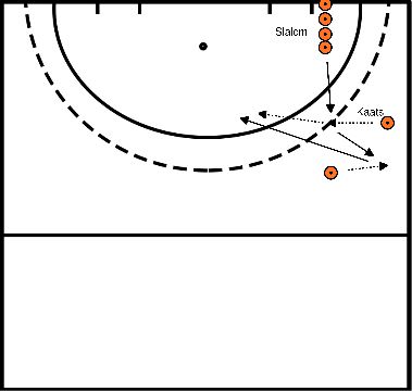 - De groep staat opgesteld aan de korte zijde van het veld in enkele estafetterijtjes.