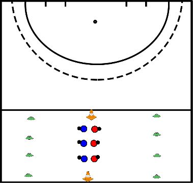 - De bedoeling is dat je dus buitenom hockeyt en niet door de as van het veld.