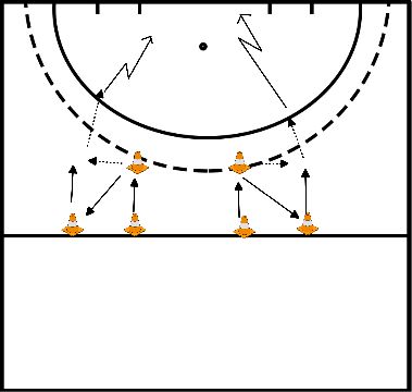 • Sprint terug naar de stip, en biedt zich weer aan voor bal 2 op de kop van de cirkel