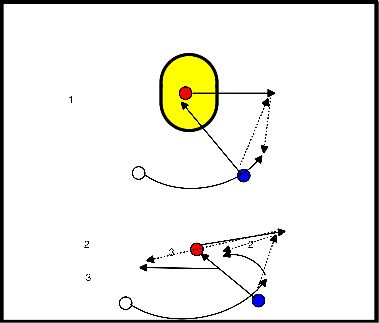 - De speler voor de pion probeert de bal ondertussen te onderscheppen en de pion te verdedigen.