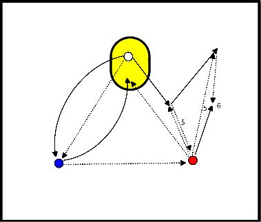 - De spelers om deze ene speler heen moeten proberen, door de bal snel rond te passen, op de pion te gooien.