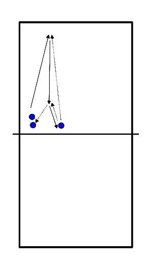 - Opgooier naar andere kant van het net, hetzelfde principe maar dan gespiegeld.