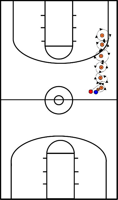 - e corre atrás do outlet pela linha lateral até ao outro lado para recuperar a bola para um layup.