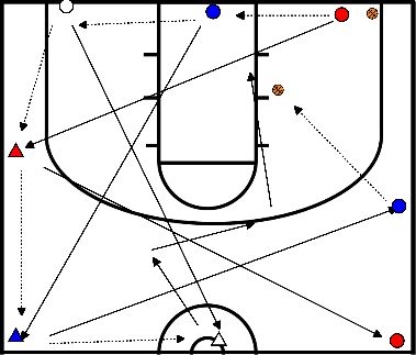 - O jogador defensivo que apanha o ressalto ou o roubo de bola vai para o outro lado do campo com os 2 jogadores que estavam na linha de fundo