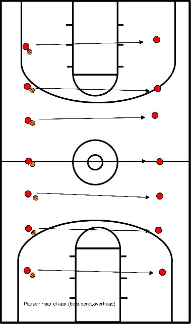 3 filas junto ao cesto. Todos têm uma bola.