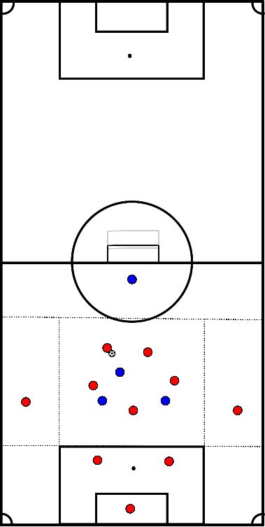 - Jogador 6 finaliza, pega a bola e junta-se ao jogador 1.