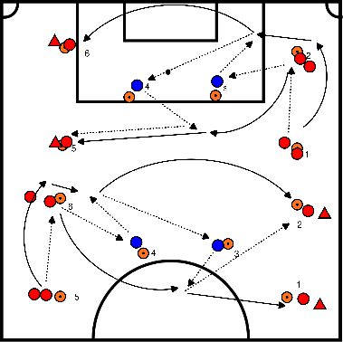 - Nota: no final de cada exercício, os jogadores efectuam um arrasto para o portão seguinte
