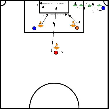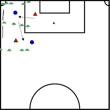 - A lateral direita e o atacante entram na área de penalidade e finalizam o cruzamento da lateral esquerda.