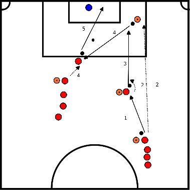 - O jogador que finalizou passa para o lugar do avançado, o jogador que passou passa para o lugar do médio.