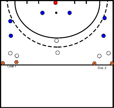 - Se o defensor retirar a bola, deve certificar-se de que a bola é jogada através da porta laranja.