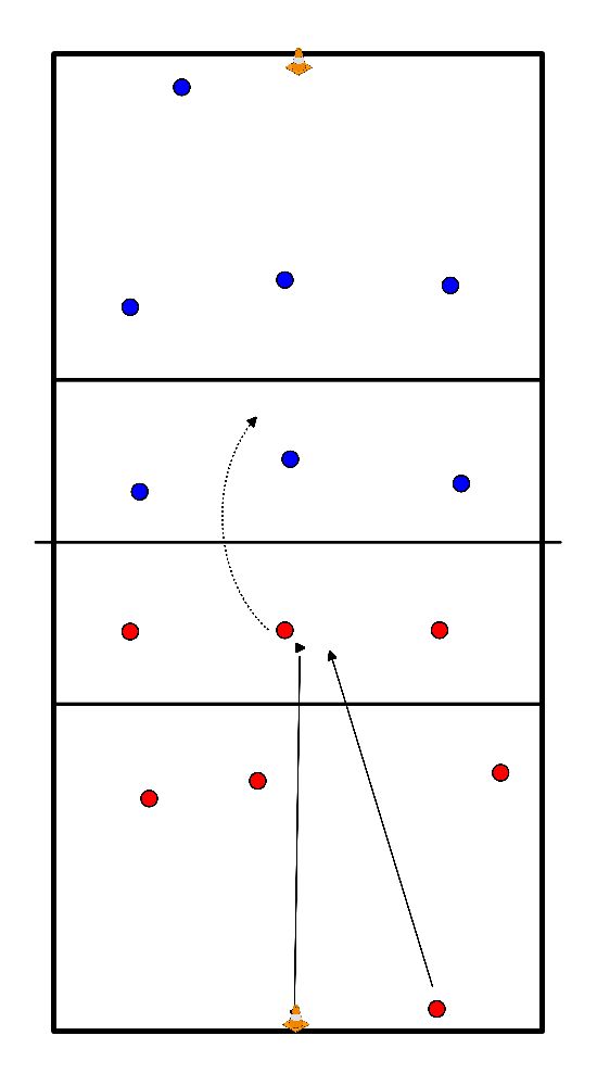 - Faça isto a grande velocidade, certificando-se de que os jogadores se movimentam ativamente.
